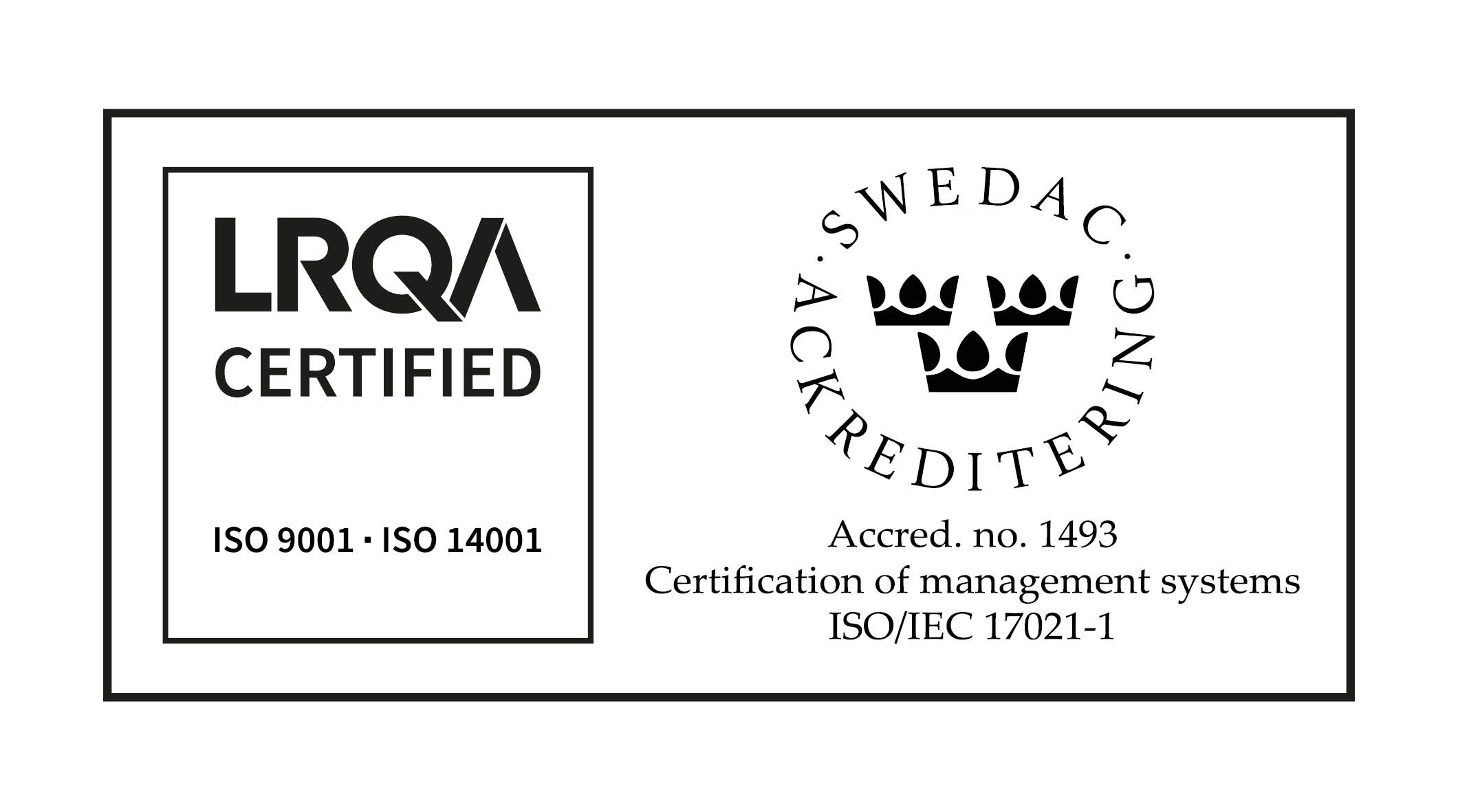 We are very proud to be approved to the Quality and Enviromental Management System Standards of ISO 9001 and ISO 14001. Our efforts to increase customer satisfaction and reduce our environmental impact is shown in the goal we sett in priority areas, but above all a continuous improvement in our daily work.